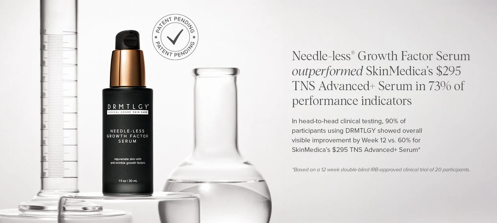 In this 12-week clinical study, participants were split into two groups—each applying a different topical treatment twice daily. Preliminary results showed visible improvements in wrinkles, texture, and firmness across both groups. One group used DRMTLGY's product, while the other used SkinMedica’s TNS Advanced+ Serum priced 4x more. However, the formula developed by DRMTLGY demonstrated notably superior results in skin texture and firmness.